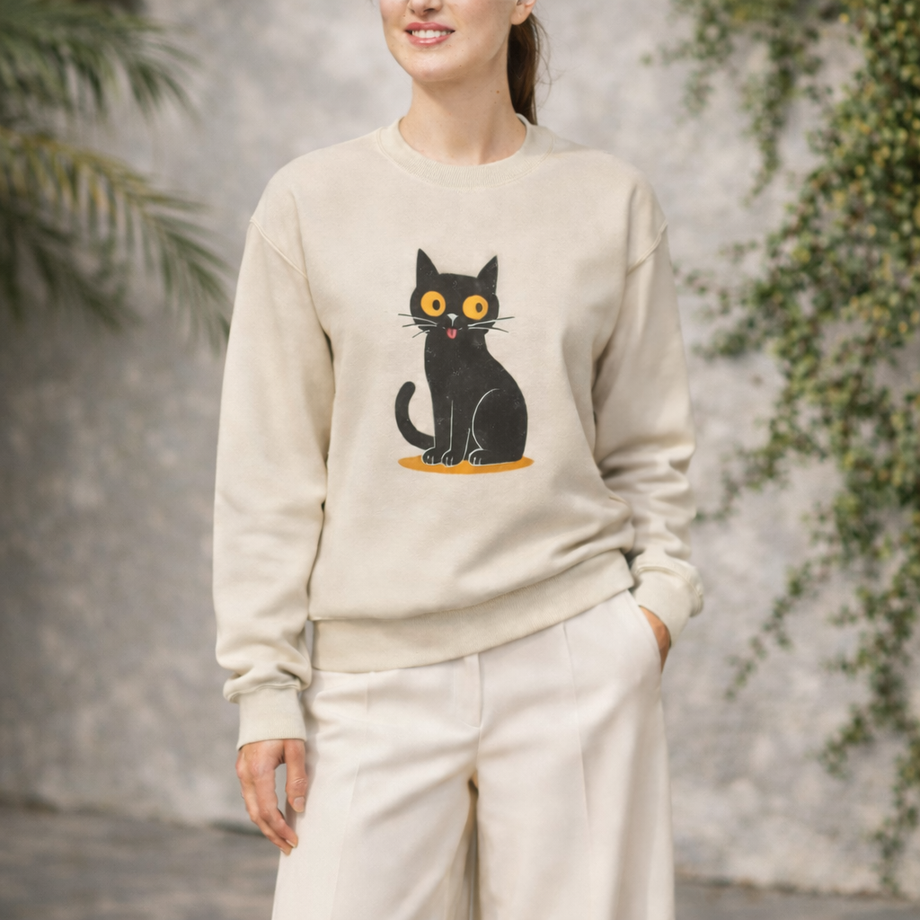 Shop our premium embroidered crewnecks, heavyweight "Quiet Luxury" tees, and high-end feline art prints that meet her impossibly high standards. Style so sharp, it might actually get a purr of approval.